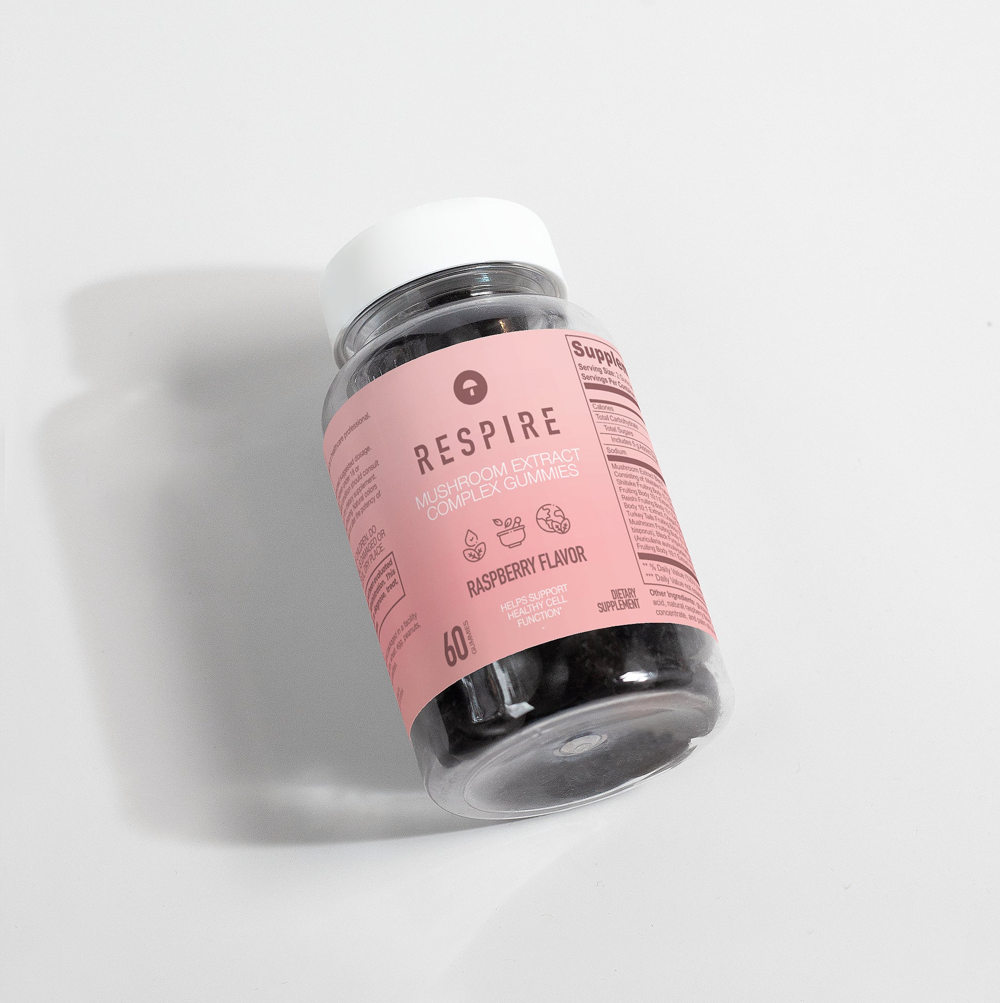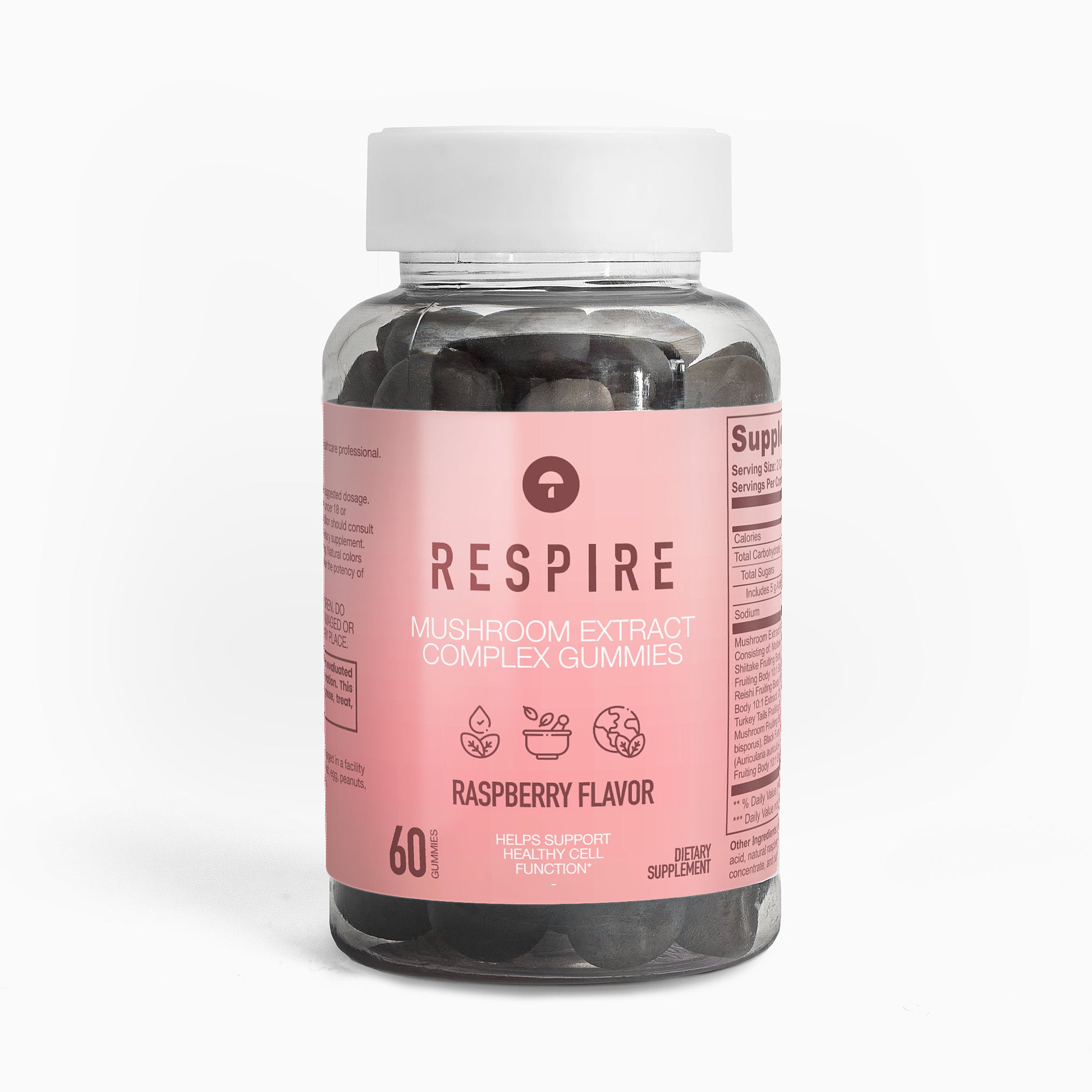 Ingredients: Mushroom extract (Maitake Fruiting Body 10:1 Extract, Shiitake Fruiting Body 10: 1 Extract, Lion’s Mane Fruiting Body 10:1 Extract, Reishi Fruiting Body 10:1 Extract, Cordyceps Fruiting Body 10:1 Extract, Chaga Fruiting Body 10:1 Extract, Turkey Tails Fruiting Body 10:1 Extract, White Button Mushroom Fruiting Body 10:1 Extract, Black Fungus Fruiting Body 10:1 Extract, Royal Sun Mushroom Fruiting Body 10:1 Extract), glucose syrup, sugar, dextrose, pectin, citric acid, natural raspberry flavor, sodium citrate, purple carrot juice concentrate, palm oil (contains carnauba wax).